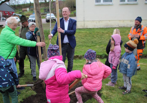 Zum "Tag des Baumes", der offiziell gestern war, pflanzten Oberbürgermeister (OB) Sven Strauß, die Ortsbürgermeisterin von Rotha, Frau Heidrun Wodtke, Frau Ulrike Lange, Kreisvorstand Schutzgemeinschaft Deutscher Wald, und die Kinder aus der Kindertagesstätte "Spatzennest" den Baum des Jahres in der Straße "Rothaer Oberdorf".
