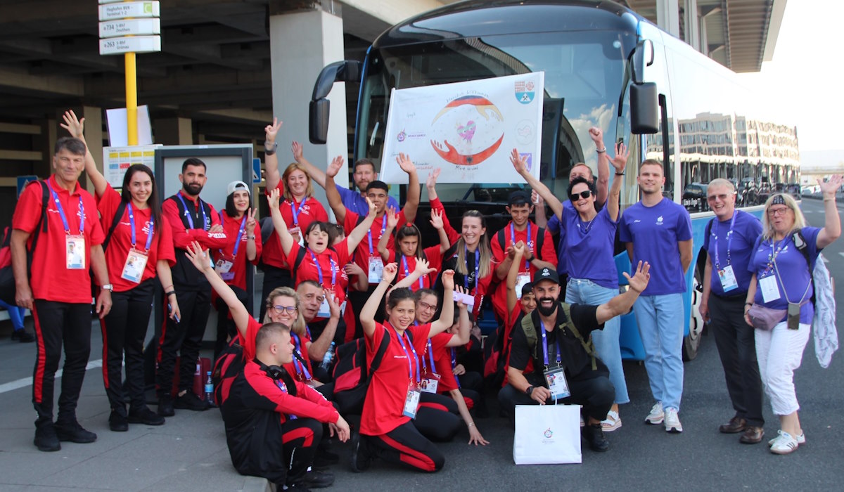 Am Montag auf dem BER: Unsere albanischen Gäste, eine Delegation aus 10 Sportlerinnen und Sportlern mit ihrem Betreuerteam,sind angekommen. Die 21-köpfige Gruppe ist Teil der Special Olympics, die vom 17. bis zum 25. Juni 2023 in Berlin stattfinden.
