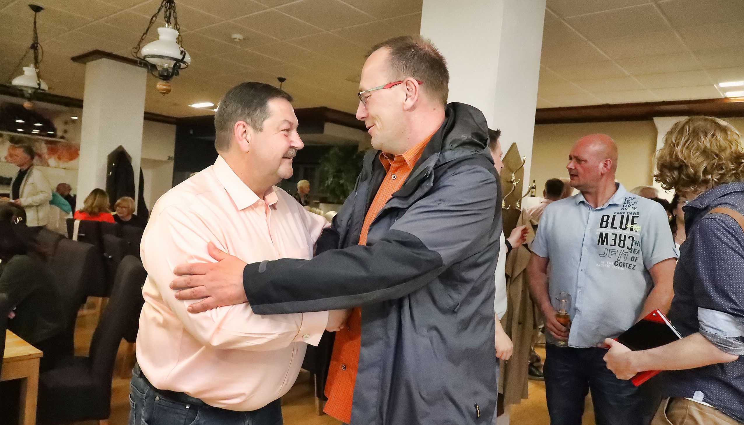 Die Wahlbeteiligung lag insgesamt bei 41,34 Prozent. Der Amtsantritt von Torsten Schweiger wird der 1. August 2024 sein. Unter den Gratulanten der Amtsinhaber Sven Strauß. Herr Strauß ist nicht noch einmal zu dieser Wahl angetreten.