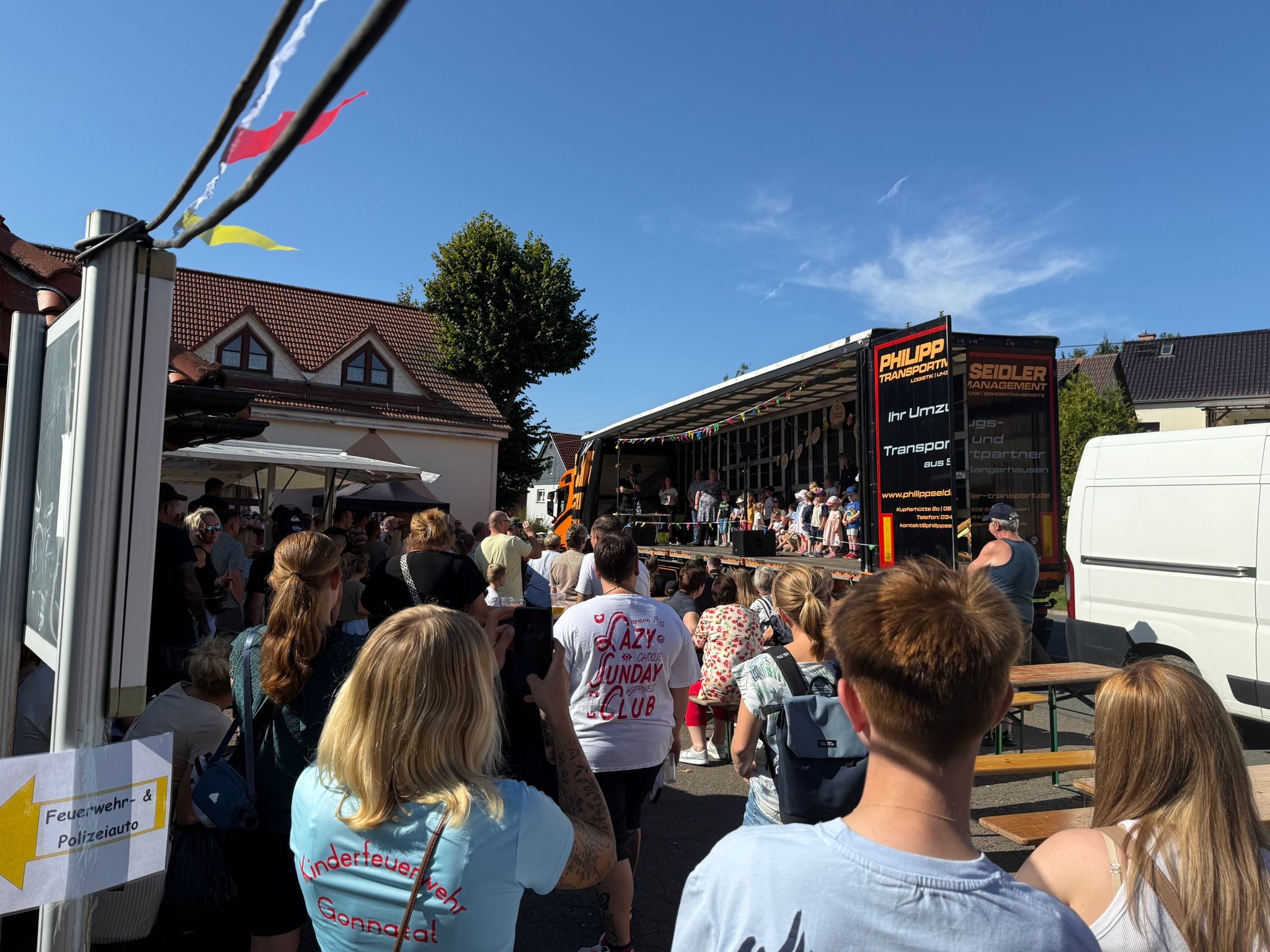 11.00 Uhr wurde das Fest in Gonna eröffnet. Die Kinder der vier Ortschaften konnten Holzanhänger bemalen, Perlenketten, Armbänder oder Button an der gut besuchten Bastelstraße herstellen oder Kinderschminken und -tattoos nutzen. Außerdem hatten sie die Gelegenheit sich auf der Hüpfburg, beim Fußballdarts oder Ponnyreiten auszuprobieren. Polizei- und Feuerwehrauto konnte bestaunt werden. Feuerlöschspiele wurden ebenfalls angeboten. Am Glücksrad waren viele Preise zu gewinnen.