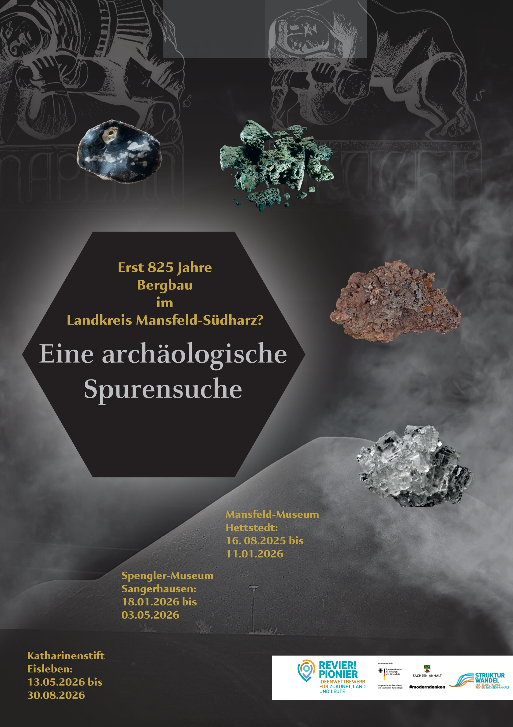 Anhand weiterer Leihgaben aus dem Depot des Landesamtes für Denkmalpflege und Archäologie Sachsen-Anhalt, der Sammlungen in Eisleben und Objekten aus dem Spengler-Museum selbst präsentiert der regionale Museumsverbund verschiedene Arten prähistorischer Bergbautätigkeiten in der Region. "Wir zeigen, wie die Gewinnung und Verarbeitung von Rohstoffen wie Silex, Salz, Kupfer und Eisen die Entwicklung der Gesellschaften geprägt haben. Dabei werden Innovationen und soziale Eliten durch den Bergbau sichtbar", erklärt Dr. Anne-Kathrin Kokles. Die junge Archäologin hat die Ausstellung kuratiert und ist begeistert: "Die Ausstellung belegt anschaulich, dass die Feierlichkeiten zum 825-jährigen Bergbaujubiläum in Mansfeld-Südharz nur einen kleinen Teil der über 6.000 Jahre langen Bergbaugeschichte in der Region abbilden.