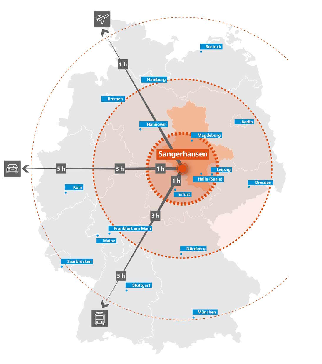 Der Wirtschaftsstandort Sangerhausen bietet beste Voraussetzungen für Unternehmenserweiterungen und Neuansiedlungen. Zentral in der Mitte Deutschlands und Europas gelegen, besteht Anschluss an alle wichtigen Ballungsräume. Verwirklichen Sie Ihre Projekte auf der Industriegroßfläche Sangerhausen direkt an der BAB 38, Abfahrt Sangerhausen-West gelegen. Die Gesamtfläche von 145 ha brutto ermöglicht Ihnen eine individuelle Planung und flexible Parzellierung. mehr